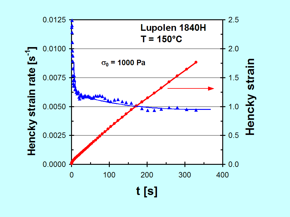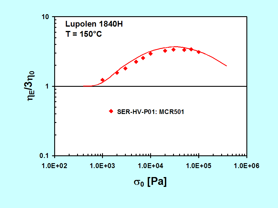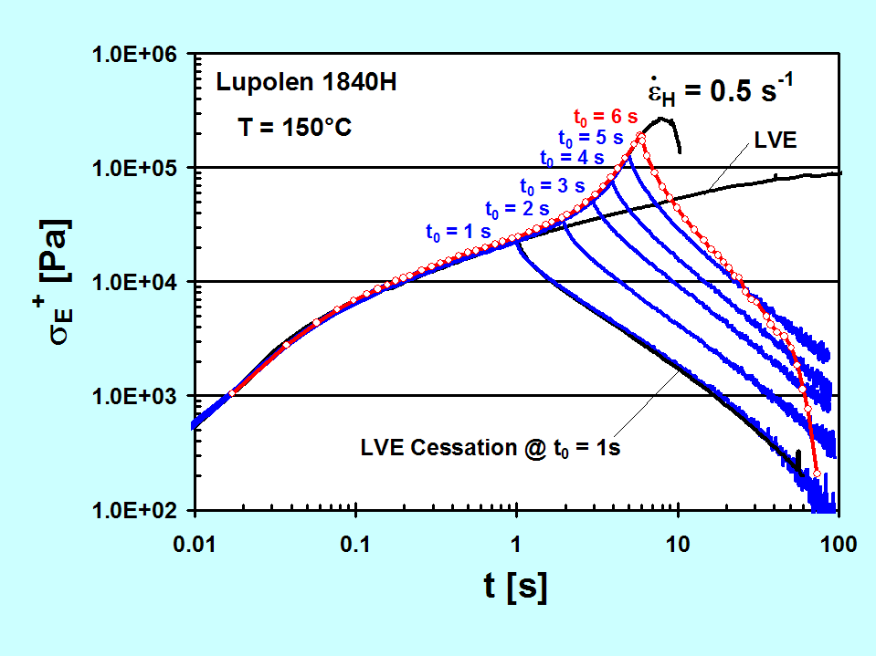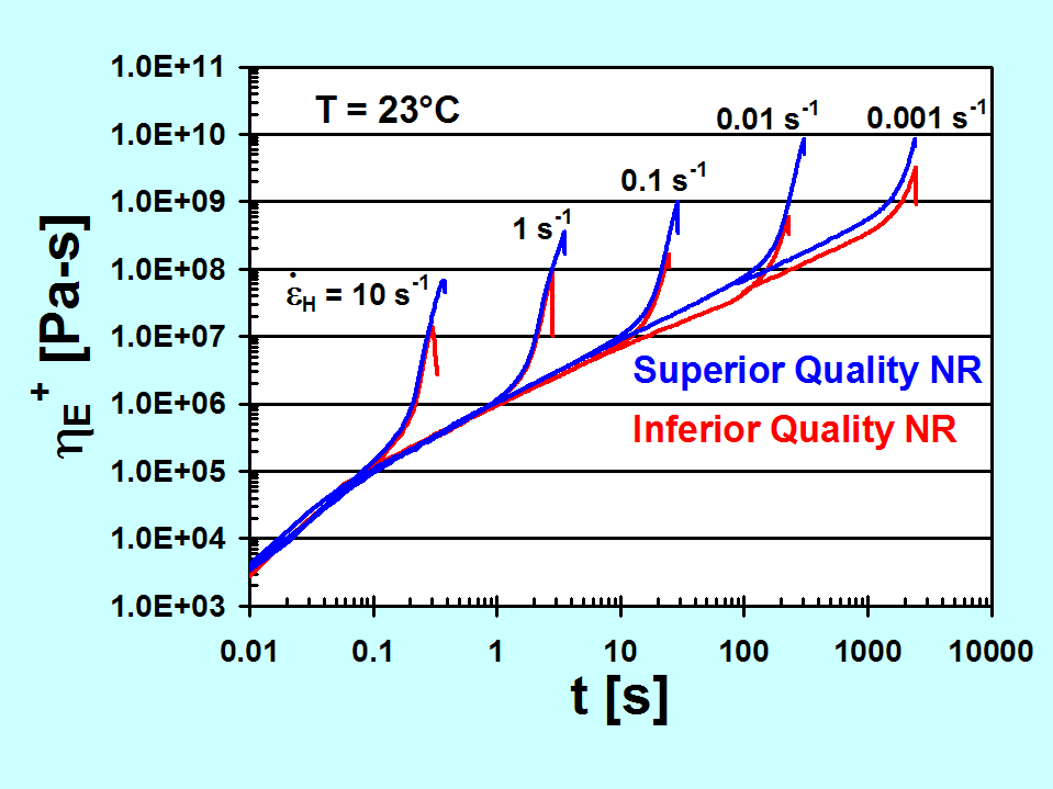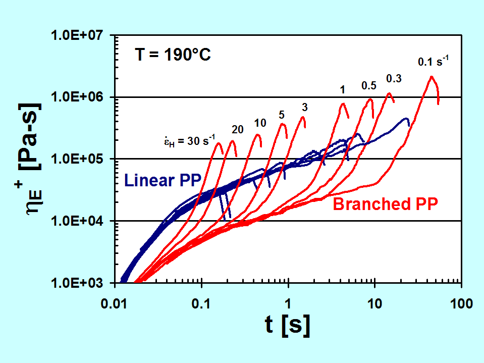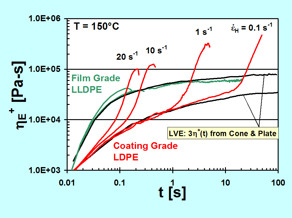 melt tensile stress growth data. Note the broad span of Hencky strain